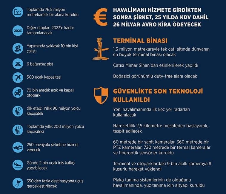 Açılışına çok sayıda yabancı konuğun da katılması beklenen havalimanının hizmete girmesinin ardından şirket, yıllık KDV dahil 1,1 milyar avro olmak üzere 25 yılda KDV dahil 26 milyar avro kira ödeyecek.